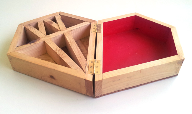 One of a kind wood case. It would make a great jewelry box, or a discreet place to keep your bed side firearm.